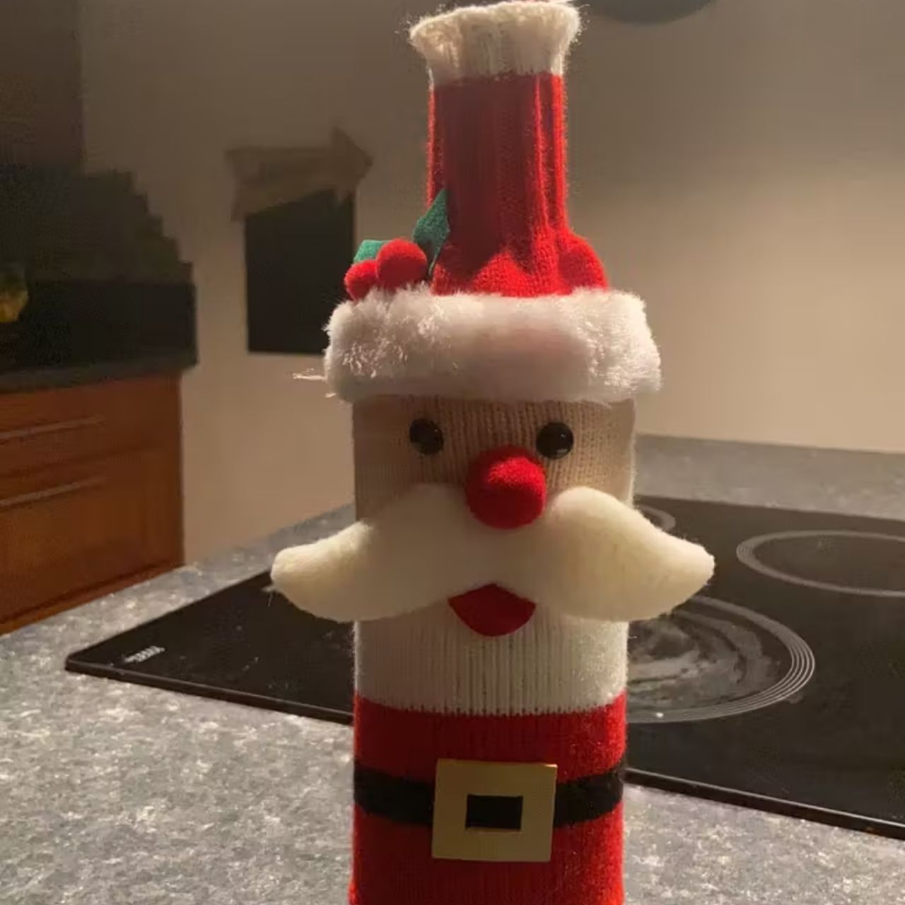 Transformă orice sticlă într-o decorațiune festivă cu husa tricotată de Moș Crăciun. Moale, drăguță și perfectă pentru mese, cadouri și petreceri.