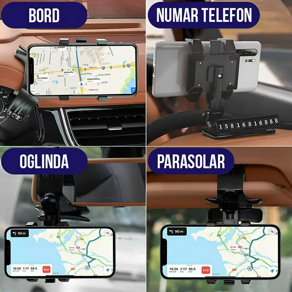 Suportul se fixează bine și usor de bordul masinii cu mobilitate buna.Urmeaza să l folosesc la drum.Îl recomand.