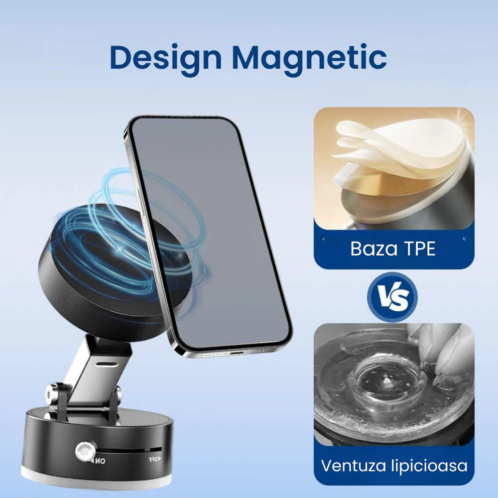 Suportul de telefon cu vidare rămâne stabil chiar și pe drumuri denivelate. Design modern, instalare rapidă și compatibilitate universală.